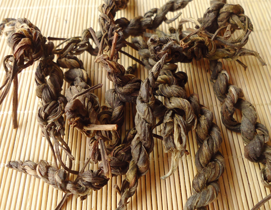 辫子茶是明清时期流传下来,保留在神秘的少数民族——傈僳族中的一种制茶工艺,它的制作需要选用百年以上茶龄的古茶树,用其好的茶青,单独杀青、单独压制,并用传统工艺精制而成,其条索具有惟妙惟肖的辫子特征。由于都是手工编织,添加了很多手工艺术情节!